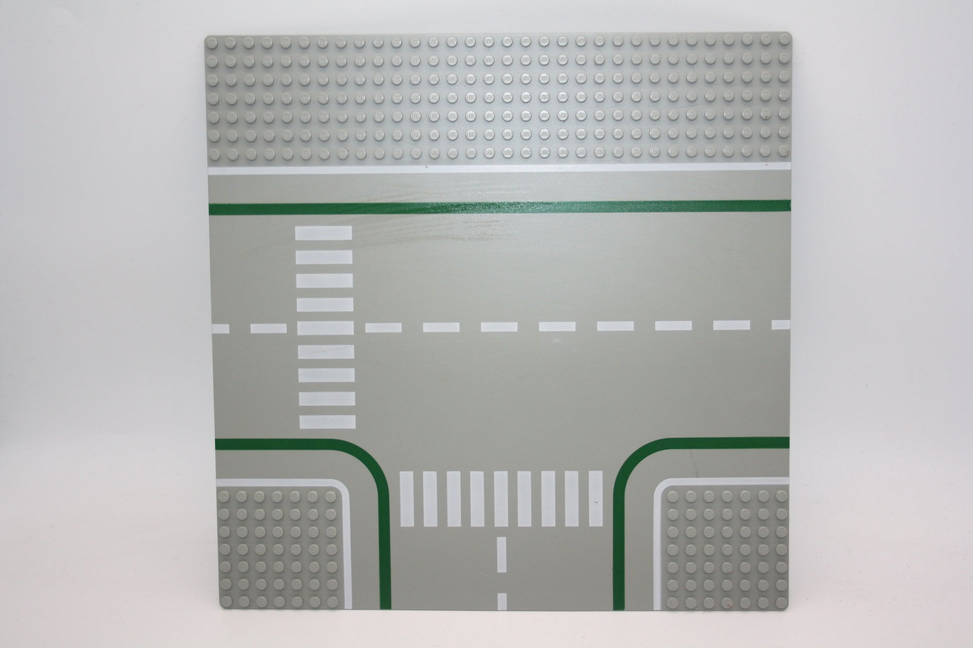 LEGO® - 32x32 Straßenplatte T-Kreuzung mit grünen und weißen Linien - grau - 608p01 - Platten - Base Plate
